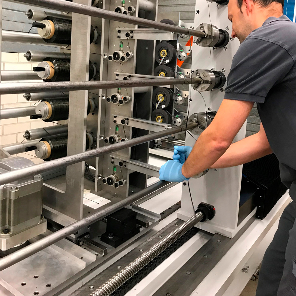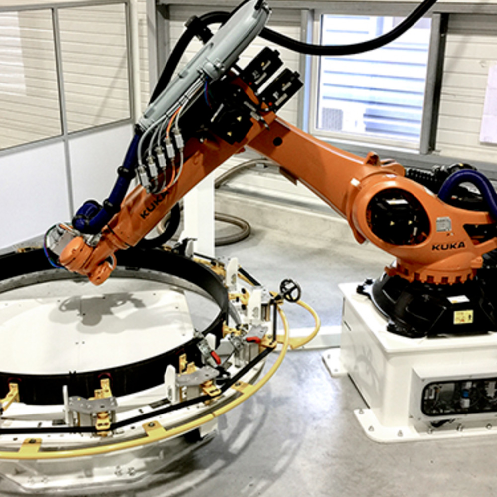 Enroulement filamentaire automatisé : fils imprégnés de résine enroulés sur mandrin pour pièces creuses haute résistance. Applications : réservoirs, tubes, jentes et structures tubulaires. Légèreté, robustesse, homogénéité ; contrôle final garanti.